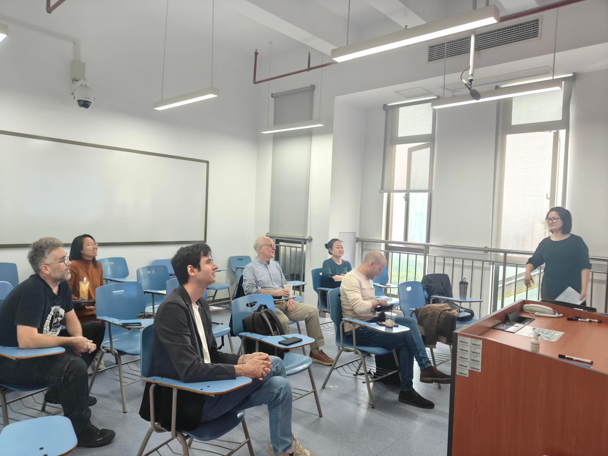 活动的高潮在于教师们之间的热烈交流。大家围绕教学方法和设计展开深入讨论,分享各自的成功经验与感悟。一位外教提到如何利用社交媒体增强员工的语言实践,瞬间引发热烈的讨论,大家争相表达自己的看法与体会,气氛热烈而融洽。