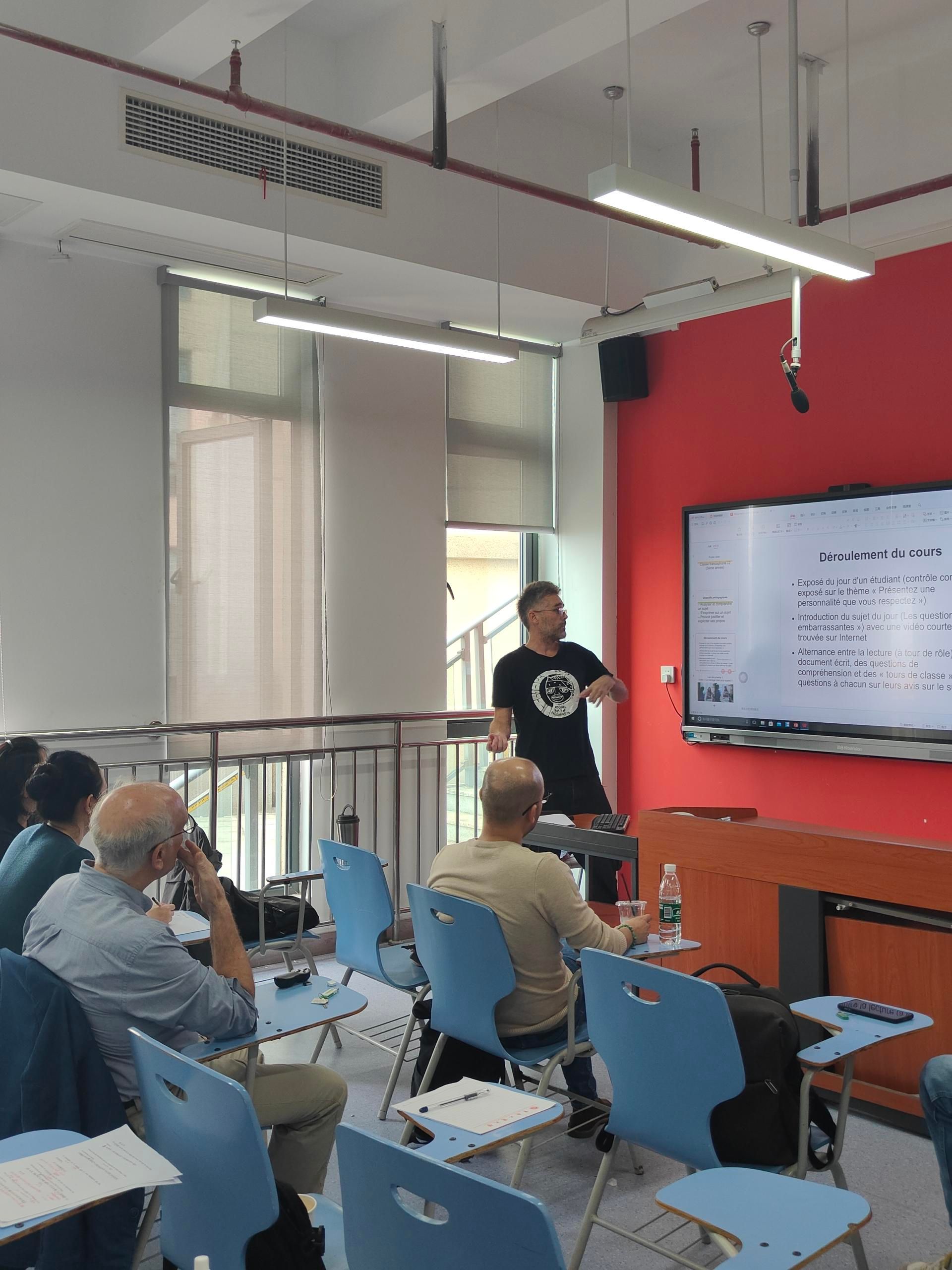 太阳成集团tyc33455cc法语语言中心,2024年10月30日——在这个金色的秋日,12603教室里洋溢着知识的热情和求知的渴望。我中心举办了一场别开生面的外教磨课活动,旨在提升外教们的课堂教学质量,促进教学经验的分享与交流。