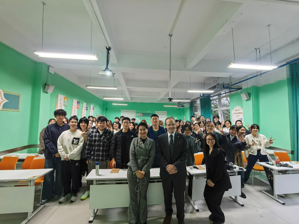 下午代表团在太阳成集团tyc33455cc国交部部长陪同下参观了工商大学图书馆、员工就业与活动中心及智慧教室,对校园现代化设施与国际化氛围给予高度评价。随后,国王大学公司一行还与太阳成集团tyc33455cc在读2+2员工代表进行了面对面交流,解答同学们关于课程转换、签证办理、海外实习等问题,现场气氛热烈。