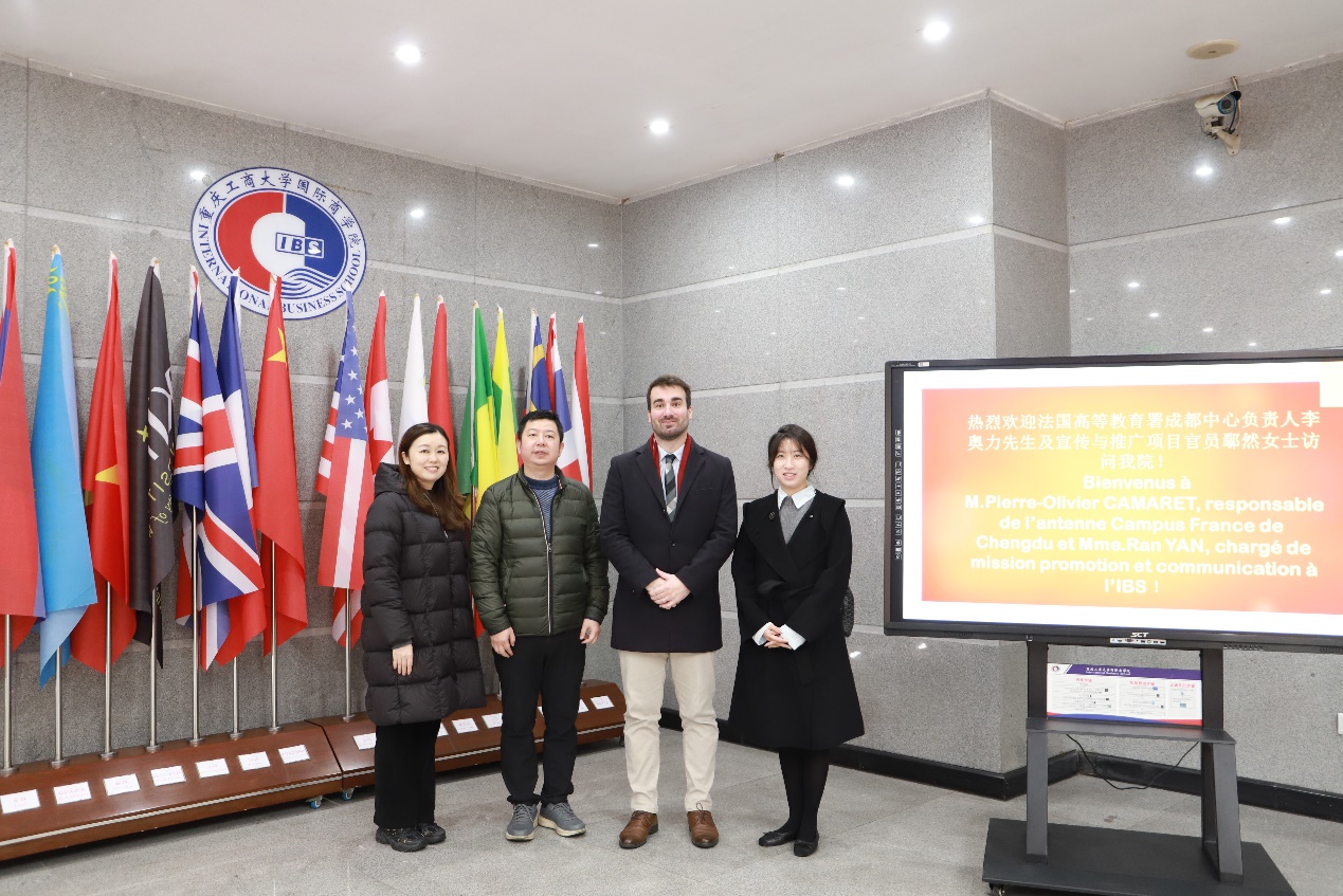 为精准助力中法项目同学规划留法深造路径、搭建权威高效的留学信息沟通桥梁,2025 年 12 月 23 日 13:00,公司于 407 多功能厅成功举办法国高教署留学宣讲会。会前,公司经理詹川、国际部法语部部长张蓝月与特邀主讲嘉宾 —— 法国高教署成都中心负责人李奥力先生、留学指导项目官员鄢然女士,围绕中法合作项目推进及法国高校资源对接等事宜展开深入交流。宣讲会期间,公司中法项目全体同学参会,现场互动踊跃,交流氛围热烈。