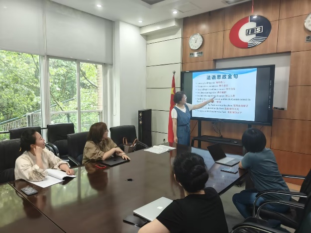 在会上,中心主任饶敏对法语语言中心目前课程思政的情况作了简单的通报,并提出了继续完善和建设思政素材库的要求,大家首先对法语语言中心现有的思政素材库内容进行浏览和分析,指出需要完善和补充的内容;参加会议的各位老师针对思政素材库的补充和新增内容,素材库的建设方式,建设标准等进行了热烈讨论,提出了很多有建设性的意见;最后大家还对思政素材库的使用方式进行了模拟和实验,从中获得了法语语言中心课程思政工作开展的启迪和灵感。