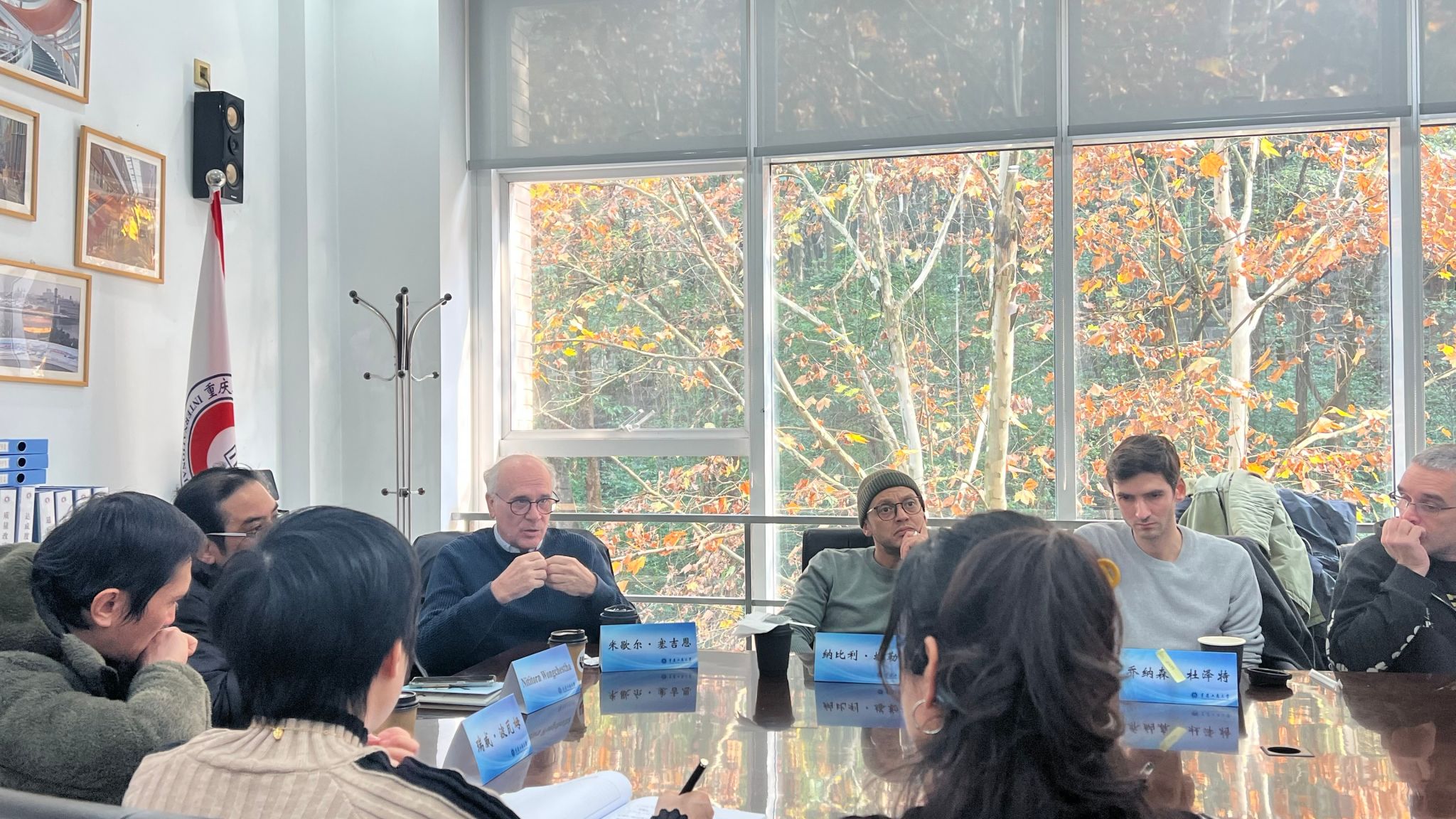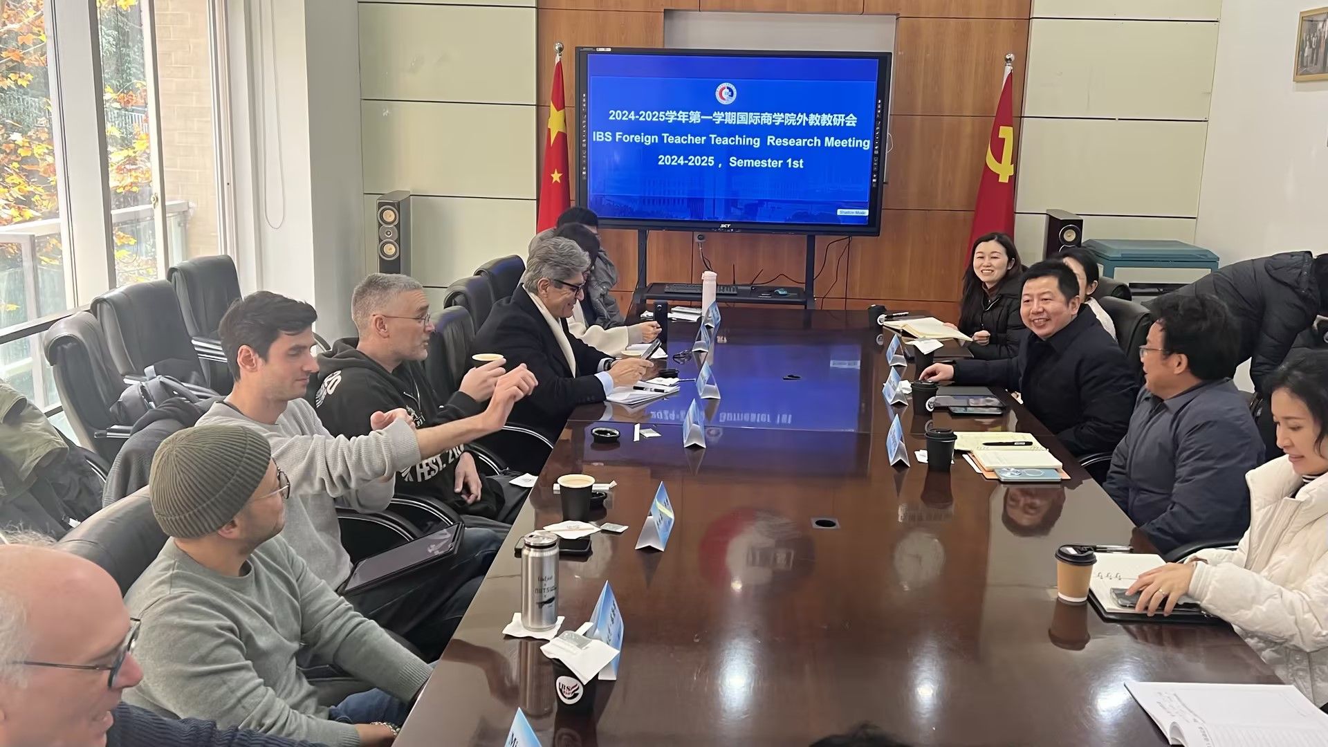2024年12月19日中午, 太阳成集团tyc33455cc英语与法语外籍教师们在510会议室齐聚一堂,与公司中方教师一起共同参加了本学期期末中外教教研会。会议由公司国交部主持,党总支李大鹏书记、詹川经理、胡婧婷副书记,以及经济学部,管理学部,英语语言中心,法语语言中心相关负责人参加了本次会议。