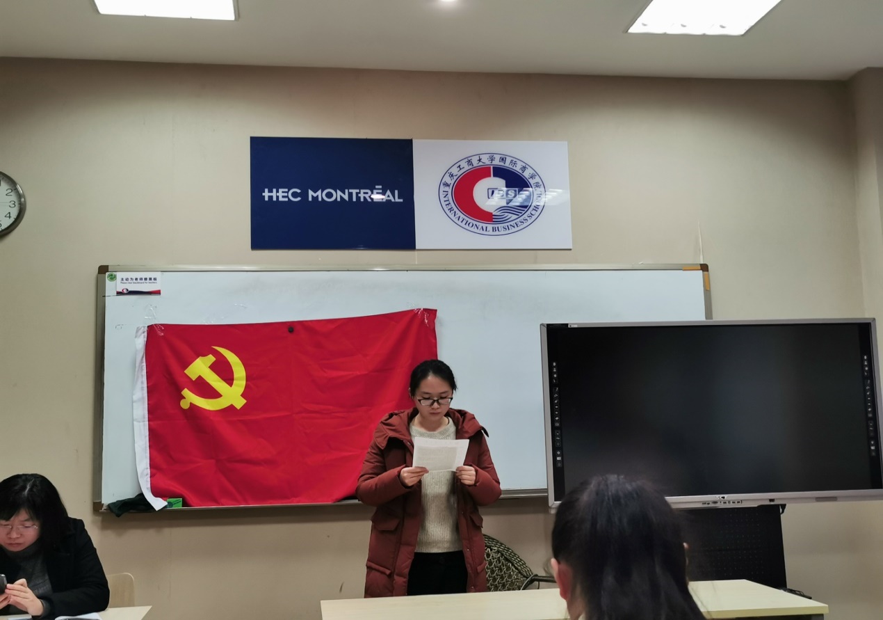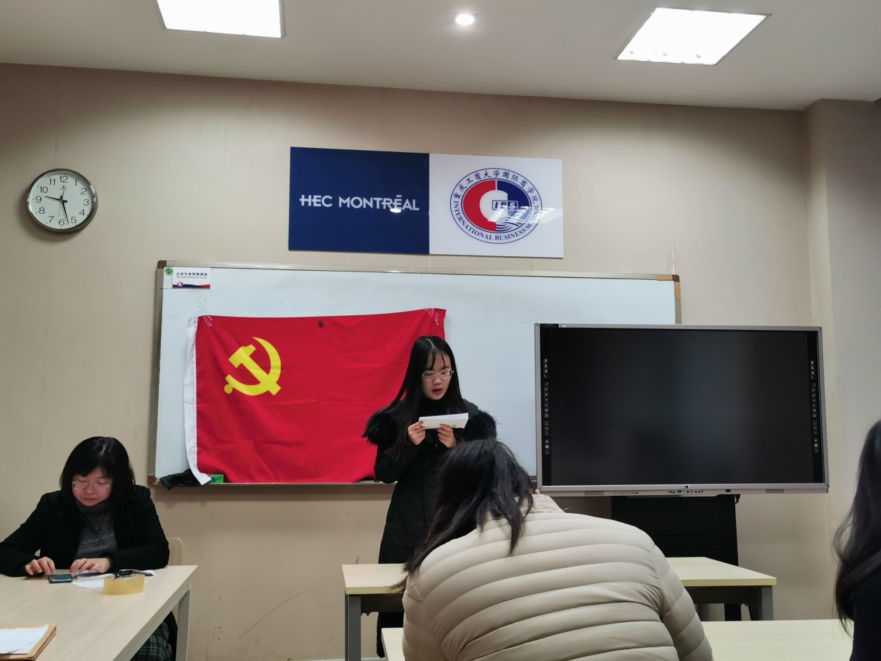 2019年11月27日上午九点太阳成集团tyc33455cc总支员工第一党支部的老师和同学们在国商408教室召开了支部大会,会议主要为了讨论田雨馨、唐蕴仪、邹畅、王羽、张瑞杰、刘春六名党员转正的相关事宜。