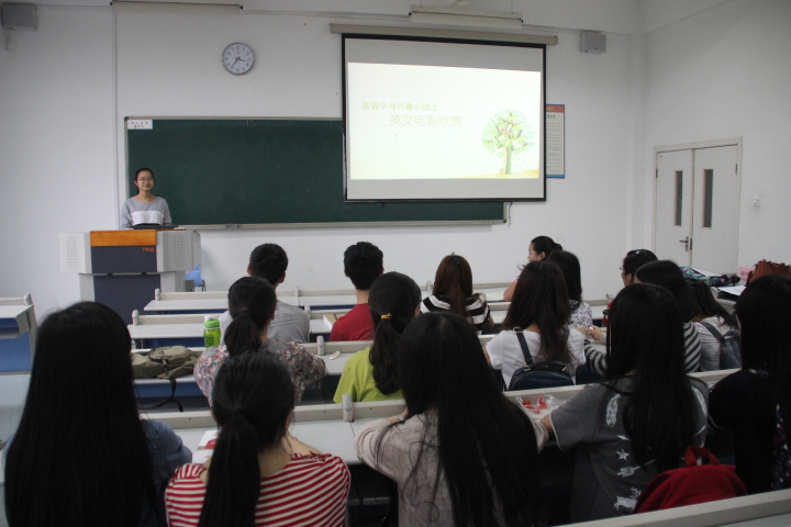 活动准时开始,张蕊同学主持开场,她首先向同学们介绍了电影《了不起的盖茨比》的背景,引起同学们浓厚的兴趣。随后,同学们一起观看电影。在播放过程中,主持人和同学们不时互动,用英语交流感想。电影很快结束了,在同学们意犹未尽时,姚青芋同学上台对一些电影中的优秀词句进行讲解,并补充了有关金融方面的词汇,让同学们颇有收获。之后,是游戏时间。第一个游戏是电影配音,同学们踊跃参加,表演出各种版本的“盖茨比”。第二个游戏是“英文猜猜猜”(两位同学分别负责动作和猜,相关的问题只能用英文问答)。同学们玩的不亦乐乎,活动气氛高涨。最后,本次活动在欢声笑语中圆满结束。