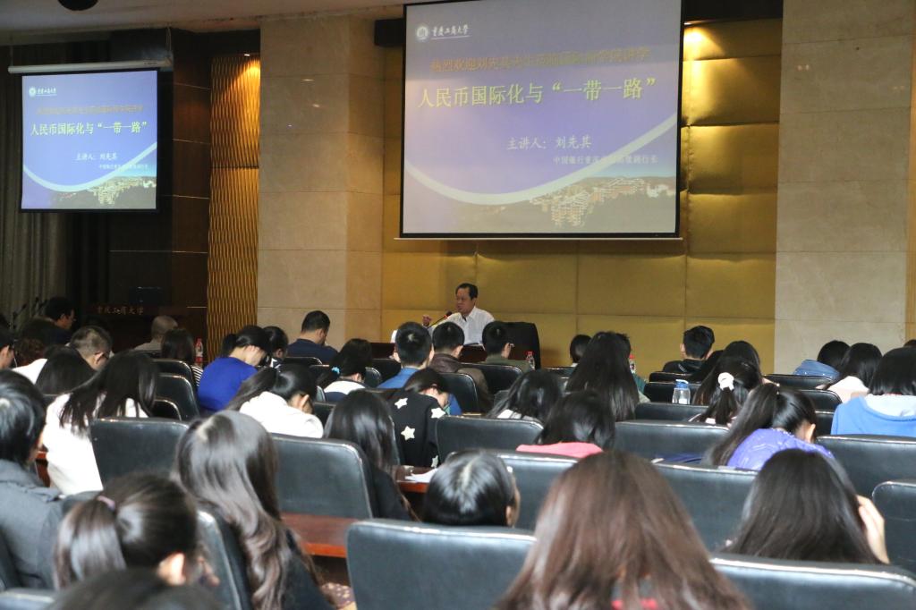 为浓厚公司学术氛围,扩大师生对国家经济金融形势的进一步了解。11月13日下午14:00,中国银行重庆分行高级副行长刘先其应邀来公司开展学术交流,并在田家炳公司408学术报告厅作学术报告。刘先其高级副行长以人民币国际化与“一带一路”为主题,为公司本科生带来了一场高质量的学术报告。公司200余名师生代表参加了报告会。