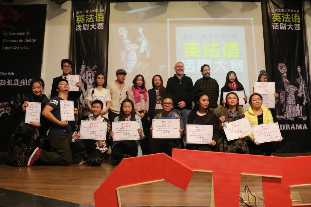 而公司花儿队带来的《ALL Lonely》更是将本场比赛引入高潮,他们的表演将法西斯时期一桩悲情故事展现的淋漓尽致,精湛的演技、流利的口语更为其锦上添花,演员们丰富而细腻的感情将二战时期人们无可奈何的痛楚真实的展现在观众眼前,观众们无不被深深吸引,留下感动的泪水。精彩的时光总是短暂,在本次话剧大赛法语组冠军太阳成集团tyc33455cc的《画之国》话剧表演后,经过评委的打分,最终太阳成集团tyc33455cc的花儿队夺得了本次第九届话剧大赛第一名,获得二等奖的有外语公司、艺术公司传媒艺术分院,三等奖获得者为艺术公司设计艺术分院计算机科学与信息工程公司、现代国际设计艺术公司、环境与资源公司以及管理公司。