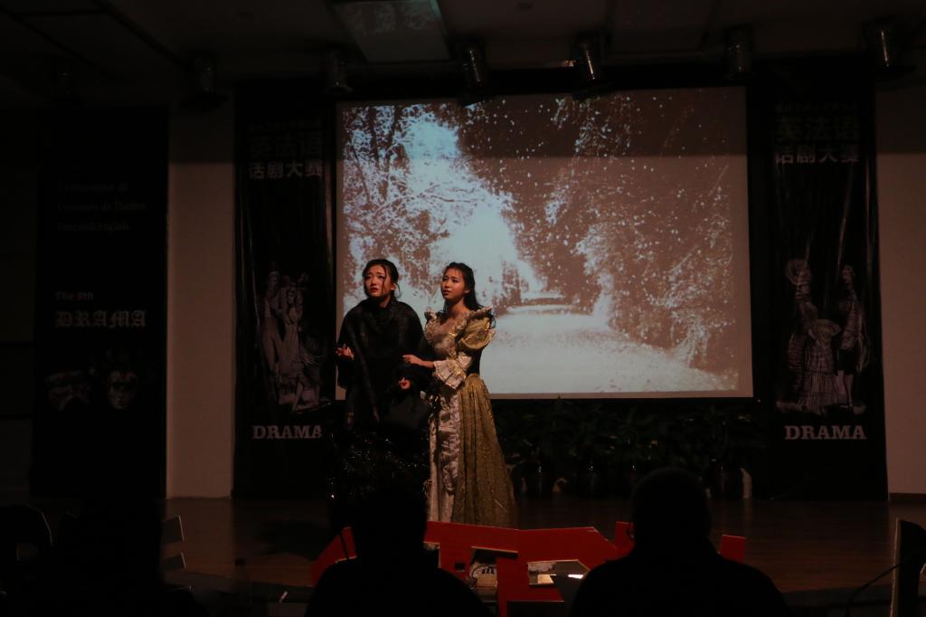 三位主持人幽默风趣的开场白瞬间带动起现场的气氛,比赛也正式开始。首先是艺术公司现代国际设计艺术分院的MIRACLE队为我们表演《The phantom of opera》,MIRACLE队每个演员的精彩表演仿佛让我们看见了经典话剧《歌剧魅影》的原画面。第二个上场的是艺术公司设计艺术分院童话队带来的《灰姑娘》,作为初赛的第一名,他们精湛的表演,赢得在场观众掌声连连。随后,外语公司双面人队、艺术公司传媒艺术分院 GLORY队、计算机科学与信息工程公司的计信公司代表队也同样带来了精彩的表演。环境与资源公司和管理公司代表队更是以两种不同的风格为大家诠释了《甄嬛传》中西文化结合的独特魅力。