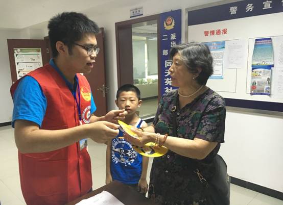 与此同时,同天苑社区志愿服务小组主要授课人张清湘以动漫为主题,通过角色配音、猜人物经典语句等方式,给社区小朋友带来了一堂别有生趣的课堂,让社区小朋友们度过了一个不同寻常的上午。课程结束后,志愿者们针对社区老年人开展了发放安全手环的活动,受到了社区老年人的欢迎。