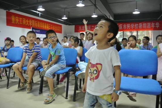 2016年7月6日上午9:30,公司暑期三下乡社会实践服务团成员刘琪和职工郑凯鸿在二郎街道云泽路社区市民公司给社区小朋友带去了趣味英语,他们寓教于乐,利用视频教学和集体游戏,提高了社区小朋友学习英语的兴趣和积极性,同时也巩固了他们在课堂所学的知识。小朋友在互动环节的参与和配合,也使课堂效果更加精彩。在活动结束之时仍有小朋友不断赶来参加活动,职工志愿者郑凯鸿给他们耐心讲解了一遍上课的内容,受到社区家长和小朋友的一致好评。