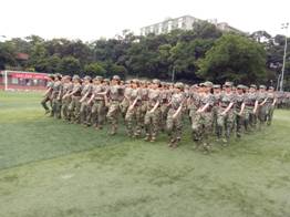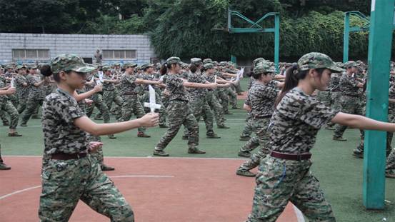 这之后,我们开始了各连的分工任务。有的连跳起了手语操,有的连练习着打拳,而我们连是进行的匍匐刀格斗训练。一个个女生,收起了自己柔弱的一面,大家都在展现着自己不怕苦不怕累的英姿飒爽的一面,这实在是,太美了!教官教会了我们动作,在前面喊着口令,我们拿着自己做的匕首,整齐有力的做着每一个动作,每一个嘹亮的“杀”都带着威风凛凛的气势。那可真是自古豪情有万千,沧海横流有诗篇。古往今来多评论,谁说女子不如男!