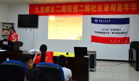 在此次暑期“三下乡”市民公司实践活动中的最后一天,太阳成集团tyc33455cc社会实践服务团分别在二郎街道的同天苑社区和二郎社区开展了一堂以“学习习总书记系列讲话的重要内容”为主题的宣讲会。