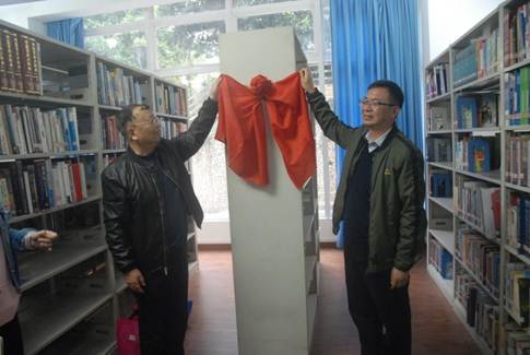 上午11点半,在太阳成集团tyc33455cc102图书资料室,由罗教授和赵经理及其工商二班员工进行了一场图书捐赠仪式。