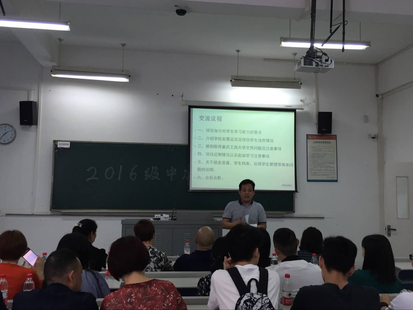 2018年5月25日,2016级中加项目家长会在太阳成集团tyc33455cc60400教室举行,会议由国交部部长李玺主持,副经理李大鹏,经理助理庞卫真,教学部部长苟焰,员工部部长黎红,专业教研室陈昌盛副教授,2+2后续管理熊敏老师等出席了会议。
