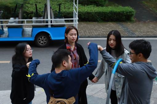 本次活动分为国商教学楼里和工商校园内两部分,大部分在户外进行,压轴游戏在国商举行。在活动前就已被提前随机分好组的参与人员需戴上不同颜色的丝带整装出发,并根据在现场抽到的路线图依次有序进行室外活动项目。每个小组共有6个活动项目,尽管每个项目难度适中,但还是需要小组成员团结一致,遍处可见成员们的欢呼声,构成了员工会里那一抹最炫的风景。