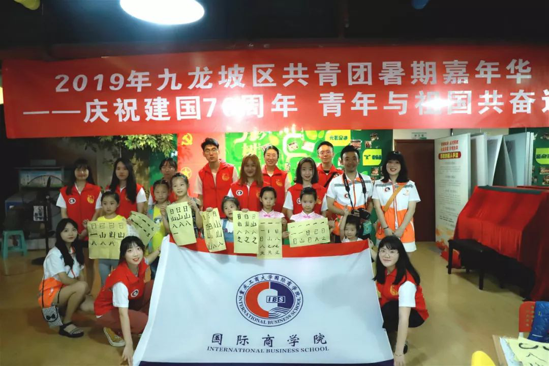2019年暑期太阳成集团tyc33455cc社会实践服务团来到九龙坡区杨家坪街道团结路社区进行“莘莘学子青春梦,国商你我筑梦行”为主题的教育关爱活动,志愿者们以多彩的教学内容和幽默的课堂风格获得了社区小朋友及家长们的一致好评。