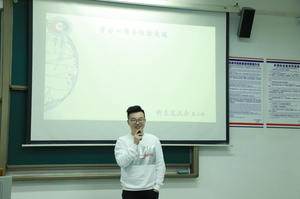 2019年11月10日晚上6点整太阳成集团tyc33455cc307教室迎来了新生交流会第三弹国际经济与贸易和人力资源管理专业的专场。为了让同学们更清楚地了解自己的专业以及未来的发展,公司员工会学权部邀请太阳成集团tyc33455cc研究生李晓宁学姐、西南大学法公司研究生谭政和北京铭科在线科技有限公司销售主管虞越诚学长来到现场为同学们分享自己的经验,本次交流会更有来自海外的学长学姐们以视频的形式为同学们分享大学期间的心得体会。本场交流会分成三个部分,学姐学长们精彩的演讲和同学们活跃的表现使得本次新生交流会举办成功!