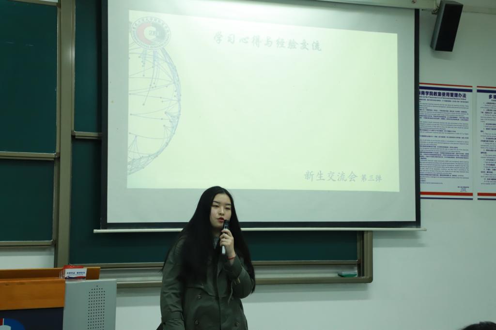 图为:李晓宁学姐演讲