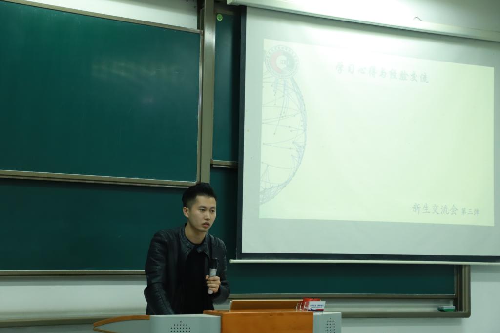 图为:虞越诚学长演讲