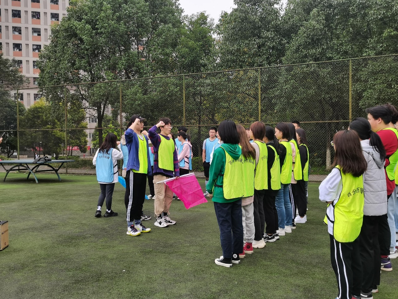 初始环节以“听三字,抓手指,受惩罚”的小游戏将现场氛围活跃起来。随后参加活动的同学们被分为“砍刀队”和“我说什么‘对’”,两队分别进行了舞蹈展示和口号宣言。通过该环节堆配合,同学们初步熟悉,大家发挥自身特长,精心设计团队队旗LOGO、排练舞蹈和口号,展现了两队的良好的风貌。