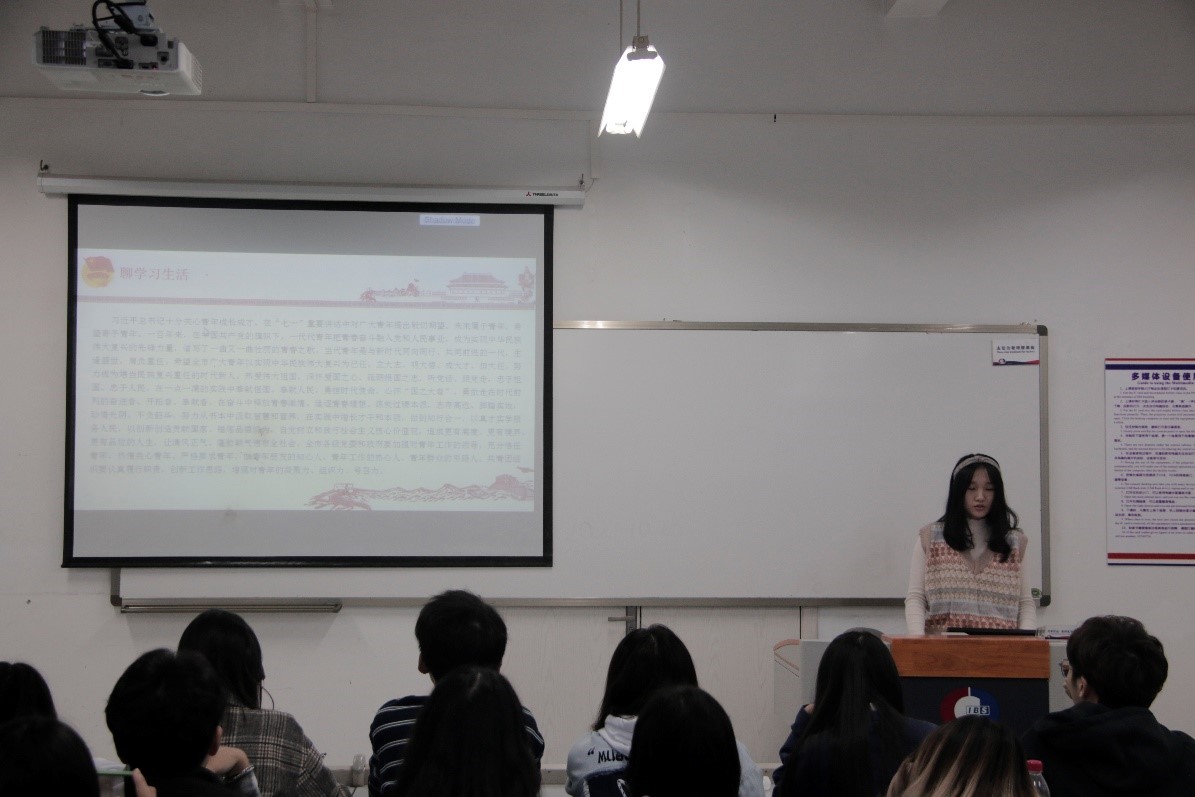 首先,员工会主席团成员曹雨霖同学上台进行学习会第一部分“聊学习生活”的阐述。曹雨霖同学提到,陈书记对全市青年寄予厚望,希望大家要以实现中华民族伟大复兴为己任,勇担时代使命,练就过硬本领,志存高远、脚踏实地,努力从书本中汲取智慧和营养,在实践中增长才干和本领,勇做走在时代前列的奋进者、开拓者、奉献者,在奋斗中释放青春激情、追逐青春理想;做到知行合一,以真才实学服务人民,以创新创造贡献国家。