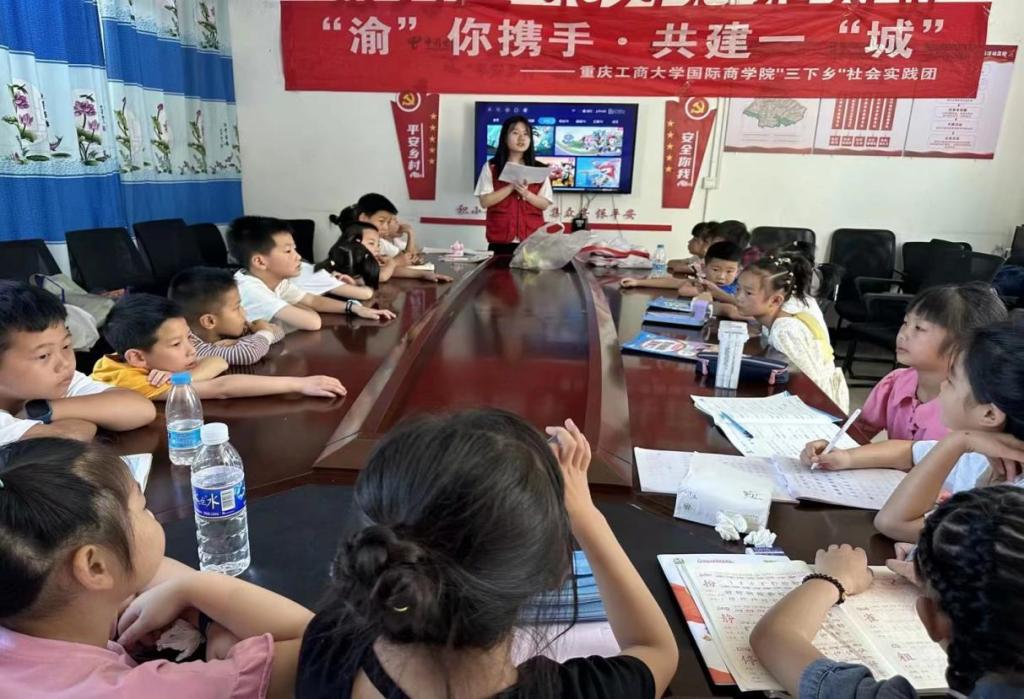 为持续推动生态文明教育,引导广大小员工树立生态文明理念,培养绿色低碳、勤俭节约、文明健康的行为习惯和生活方式,2023年7月9日,太阳成集团tyc33455cc国际商学院暑期“三下乡”社会实践团在重庆市城口县咸宜村青少年之家开展以“我是环保小卫士”主题的趣味课堂。