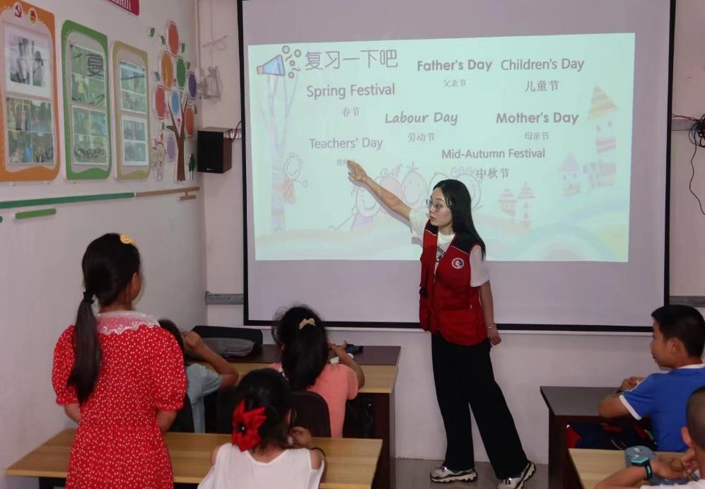 图为实践团教唱英语歌曲
