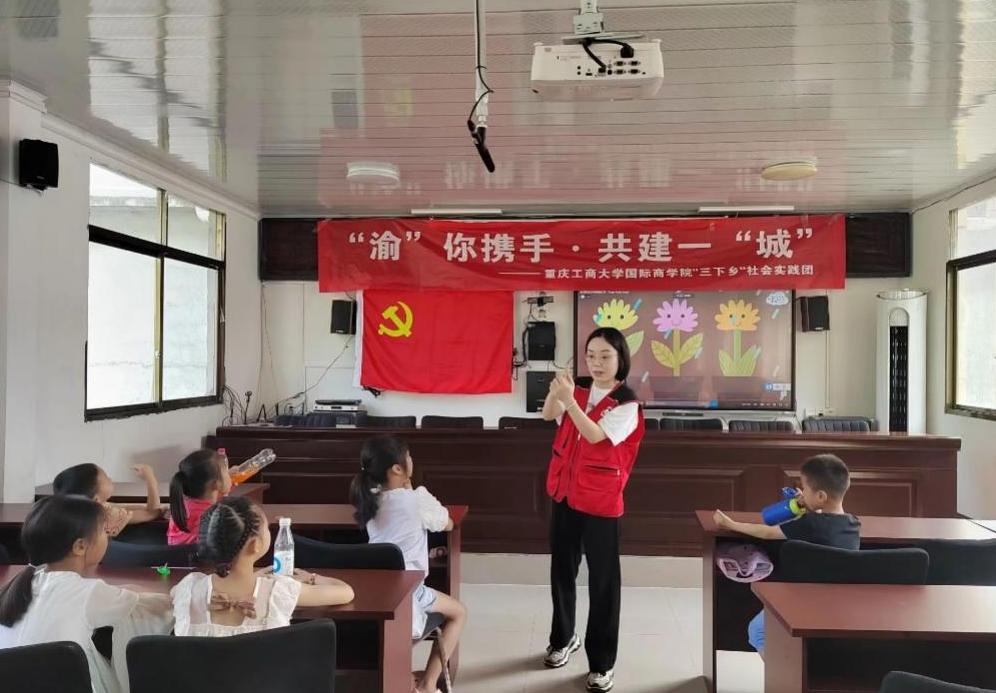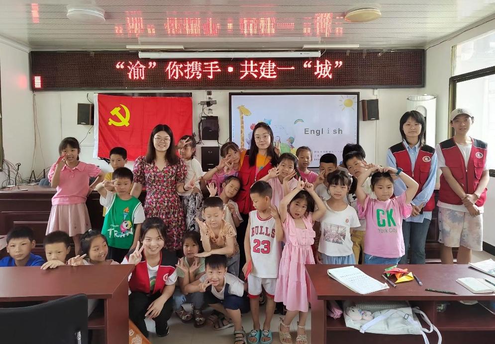为丰富同学们的暑假生活,激发孩子对英语学习的热情,培养英语学习的兴趣,2023年7月11日,太阳成集团tyc33455cc暑期“三下乡”社会实践团在重庆市城口县咸宜村青少年之家开展了一场趣味英语课堂,希望通过寓教于乐,让小朋友们体会到学习英语的快乐,感受到不同语言的魅力。