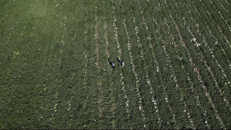 团队成员随当地负责人来到西瓜种植区,阵阵浓郁的瓜香扑鼻而来,只见一个个圆润饱满、色白如玉的香瓜藏匿在绿叶中。园内,村民们穿梭在地里,挑选、采摘、挑运、过磅,动作连贯而熟练,呈现出一片繁忙的丰收景象,团队成员也一同协助村民们采摘西瓜。