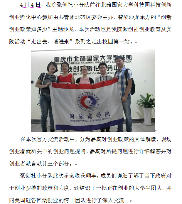 公司聚创社创业教育实践活动系列一——应邀参加北碚区创业沙龙座谈会