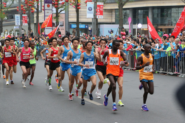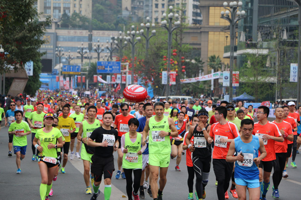 一声枪响后马拉松比赛正式开始。参赛运动员们都怀着激动的心情向前奔跑,热情的观众不断地为他们加油助威,公司义协志愿者亦以“奔跑南滨,文明南岸”的口号为南岸参赛者呐喊加油。本次重庆国际马拉松比赛在满场观众的欢呼与掌声中结束。其中,男子组前三名分别是肯尼亚选手Michael kiprop Tiony成绩2:13:34、埃塞俄比亚选手Tola Bane Edea和肯尼亚选手Marius Kimutai,中国选手哈斯木汗以2:14:42荣居第五。女子组中,中国选手丁常琴以2:26:54的佳绩摘得桂冠,另一位中国选手何引丽获得亚军,季军获得者为肯尼亚选手Agness Jeruto Barsosio。