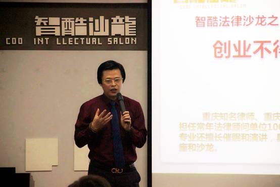 2015年4月16日下午18:30,由智酷沙龙承办的“创业法律知识讲座”在北部新区星光大道海王星科技大厦成功举办。讲座的主讲人为重庆锋度律师事务所的龙卫星律师,公司聚创社的张炽、徐缘楚、陈豪、高曦仪、谢婷五位社员参与了此次讲座。