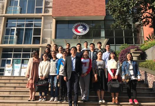 图为黄俊教授与公司学子合影留恋