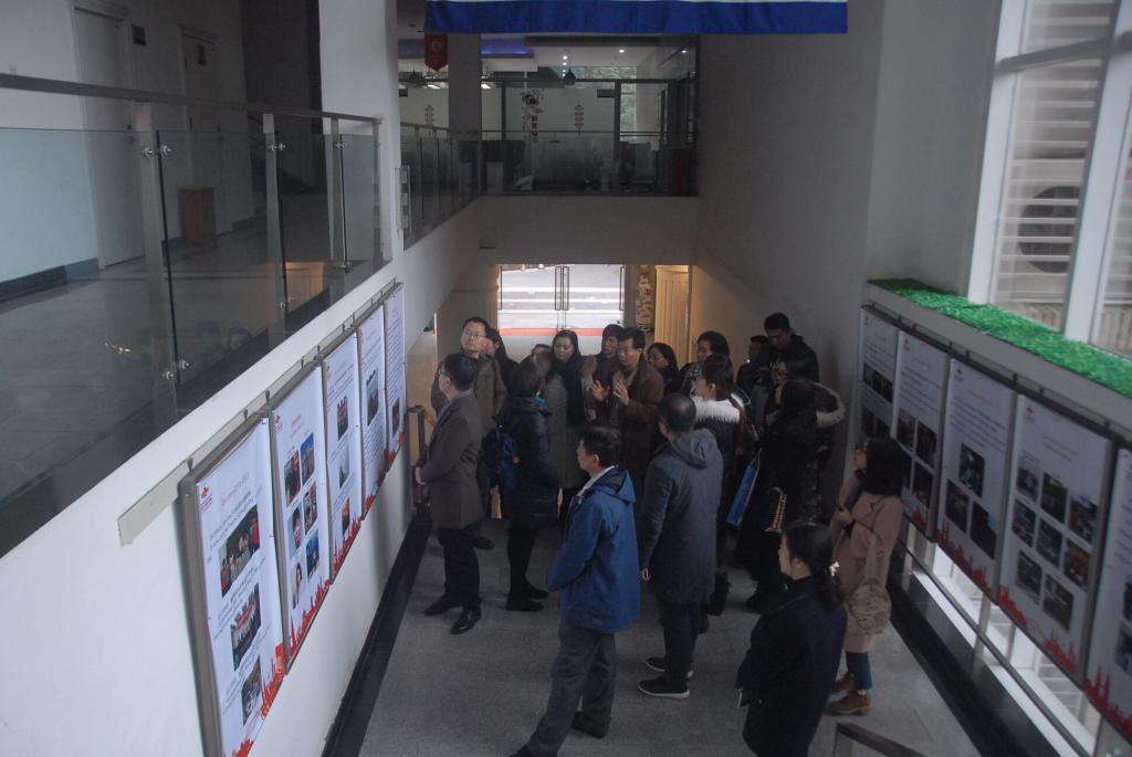在太阳成集团tyc33455cc总支副书记杨倩及经理助理庞卫真的引导下,来宾一起参观了太阳成集团tyc33455cc综合楼,并在南山书院问松厅召开了座谈会,会议由韩艳处长主持。