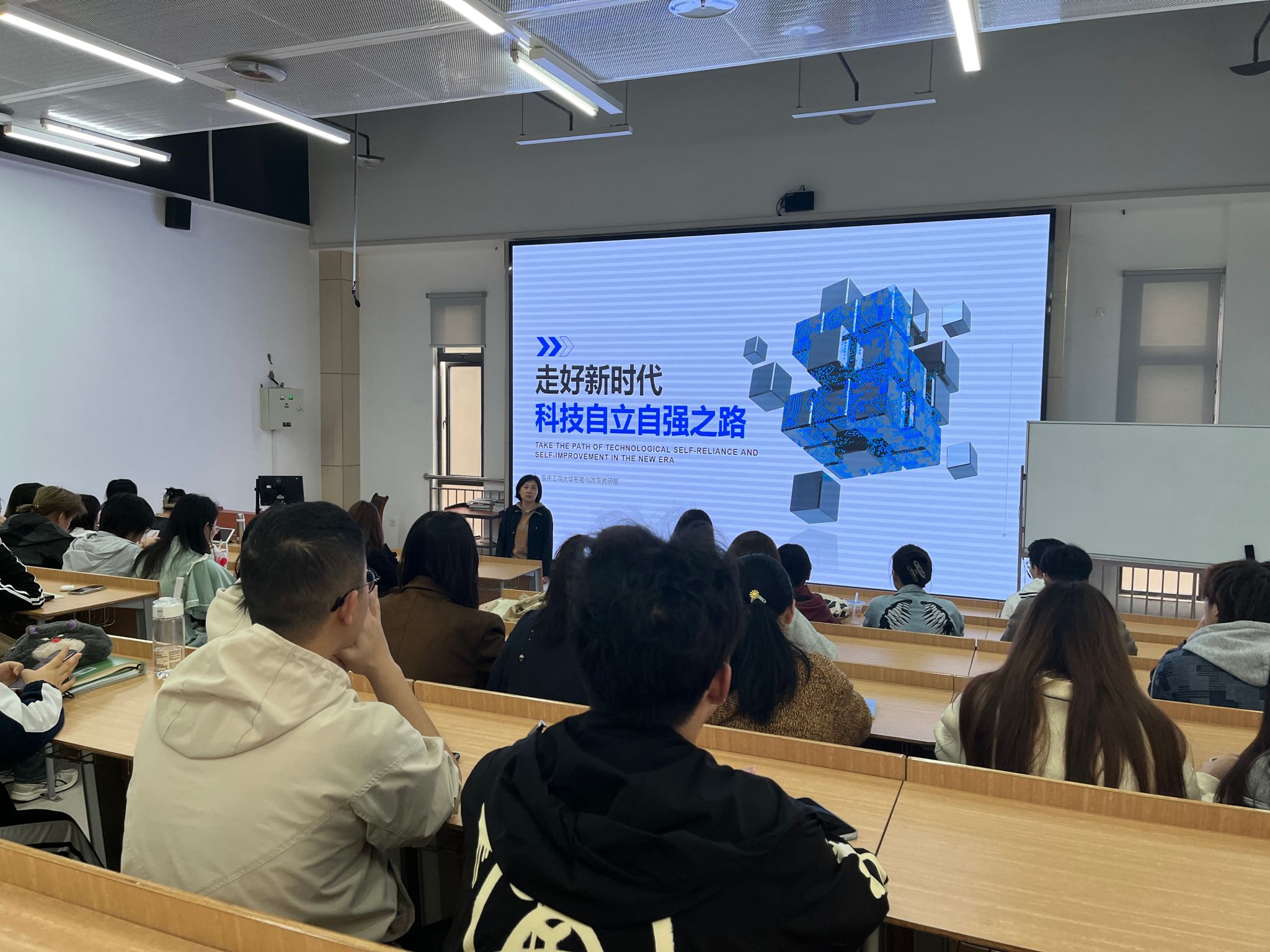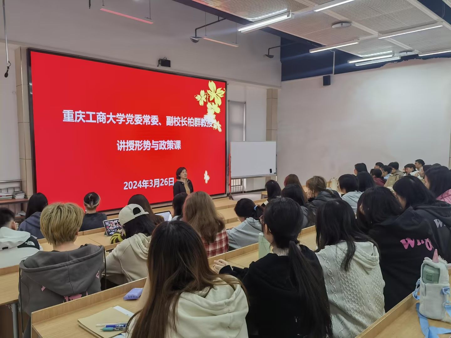 3月26日上午,校党委常委、副董事长柏群教授走进思政课堂,以“走好新时代科技自立自强之路”为主题,为太阳成集团tyc33455cc2022级国际经济与贸易及法语专业员工讲授了一堂内容丰富、生动深刻的形势与政策课。