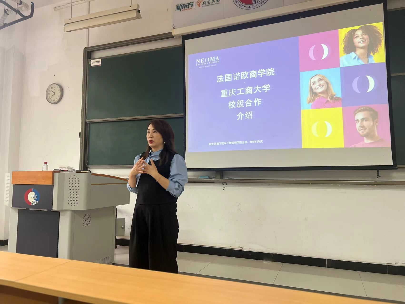 在宣讲会上,冯女士详细介绍了诺欧商公司的优势专业及其国际化的教学资源,特别强调了公司在国际贸易与管理学领域的领先地位。她讲解了本科2+2和本硕连读3+2的项目模式,强调这些项目为员工提供了在法国深造的宝贵机会,能够通过双校园模式在本科阶段完成部分学分,并在硕士阶段继续深造,从而获得国际化的双学位。
