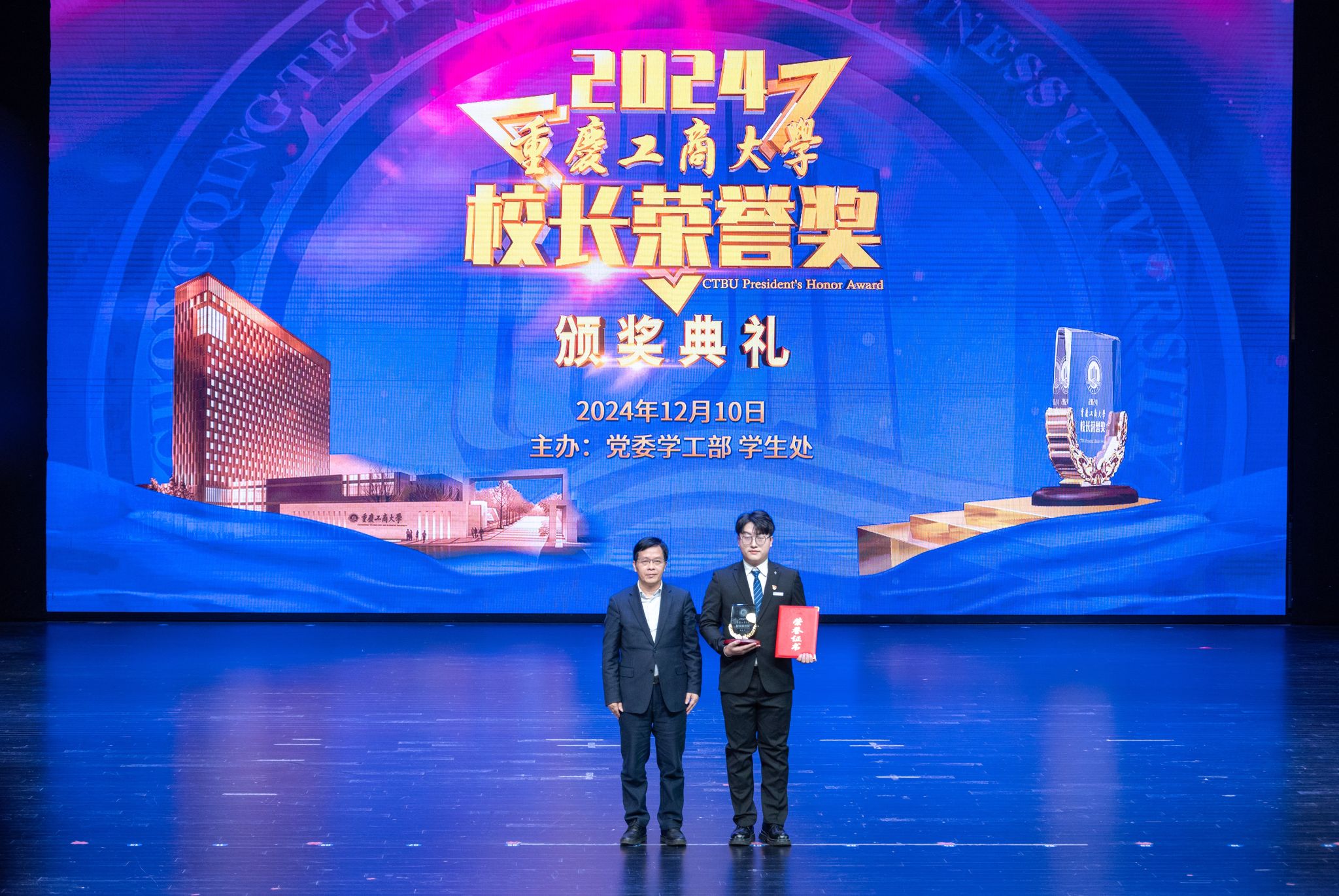 陈彦甫同学作为中共预备党员,连续三年综测专业第一,在第十八届挑战杯红色专项比赛中作为负责人带领团队获得全国一等奖,这也是公司挑战杯专项最好成绩。同时,他还获第十三届挑战杯创业竞赛全国铜奖,第十四届挑战杯秦创原专项赛全国铜奖,全国商业精英挑战赛跨境电商、品牌策划、国际贸易赛全国一等奖,全国老员工英语竞赛一等奖等11项国家级奖项。此外,陈彦甫同学主持社会实践项目成果受新疆重庆等多地政府采纳,获国家级媒体报道54篇。不仅如此,陈彦甫同学还获得国家奖学金、重庆市老员工自强之星标兵(全市仅5名)、重庆市优秀员工干部、重庆市科创先进个人等荣誉29项。