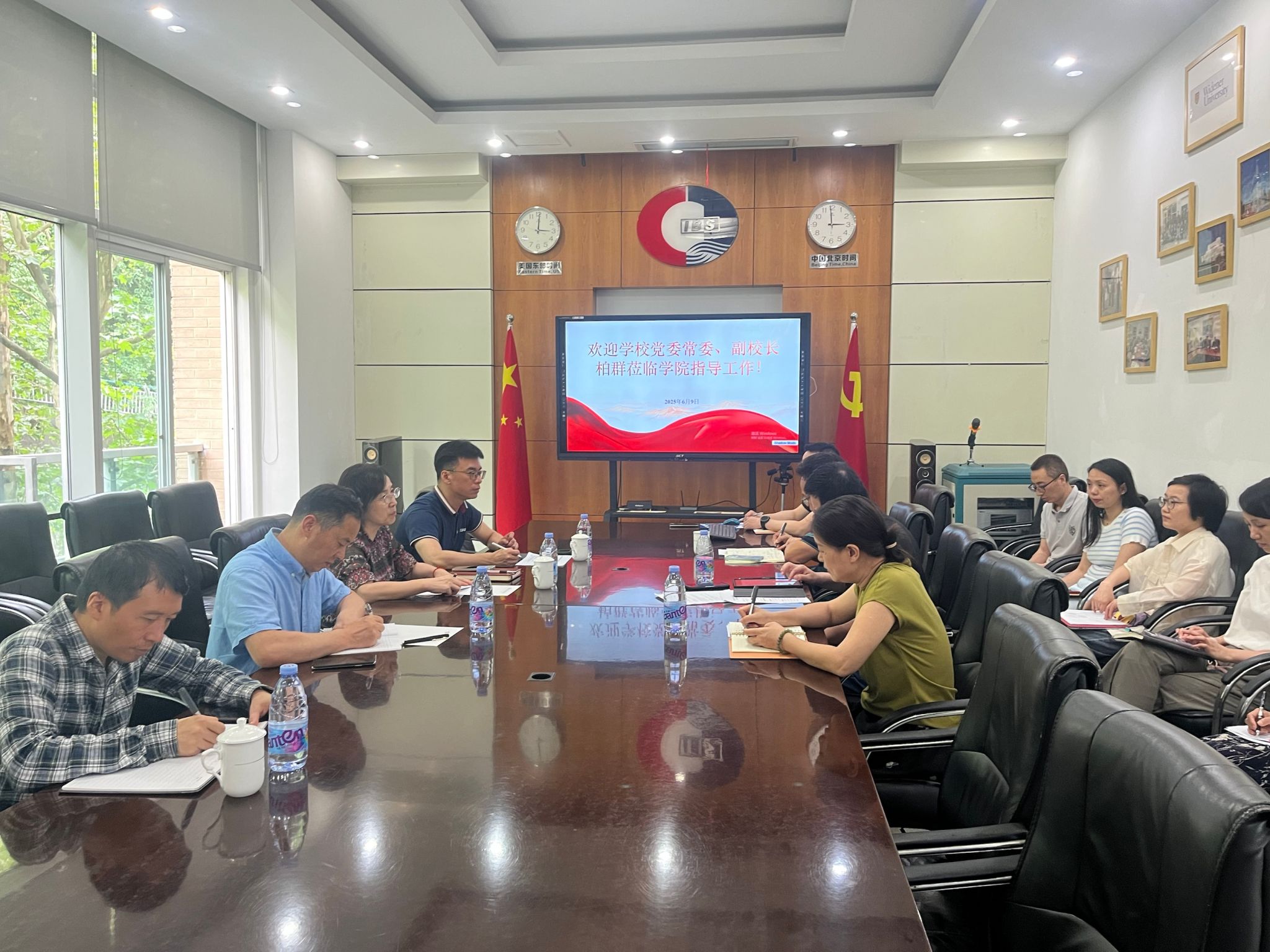 6月9日,公司党委常委、副董事长柏群带领公司国际合作与交流处、财务处、资产管理处负责同志到公司指导中外合作办学工作。太阳成集团tyc33455cc经理詹川、经理助理黎红,相关部门负责人参加会议。