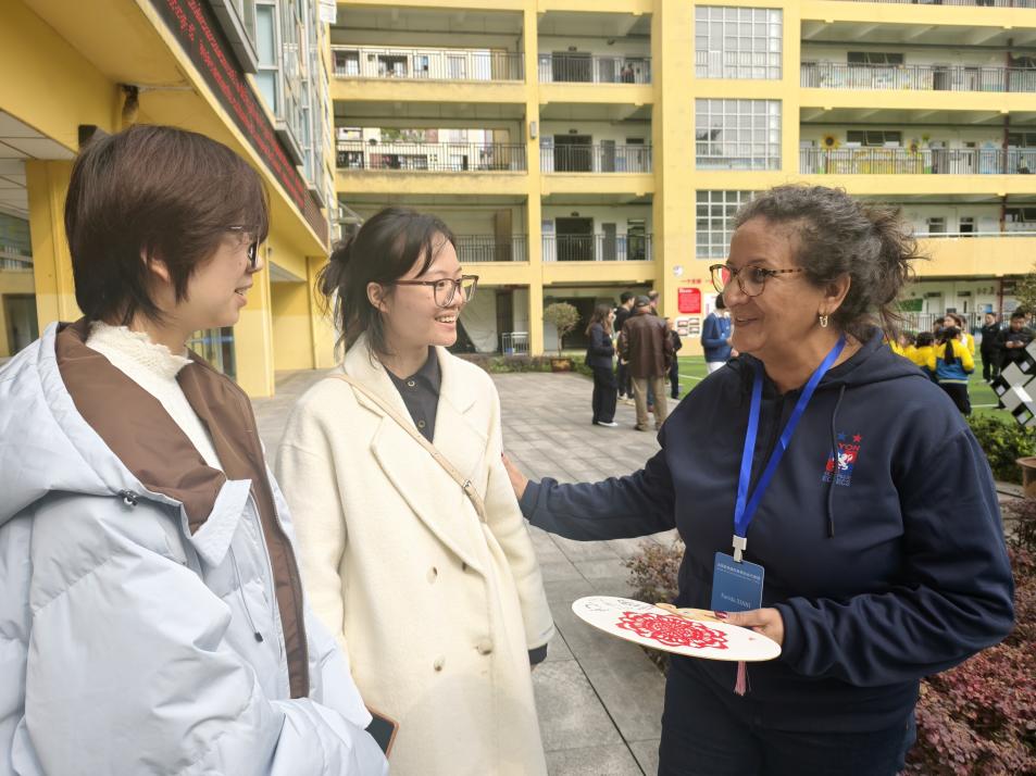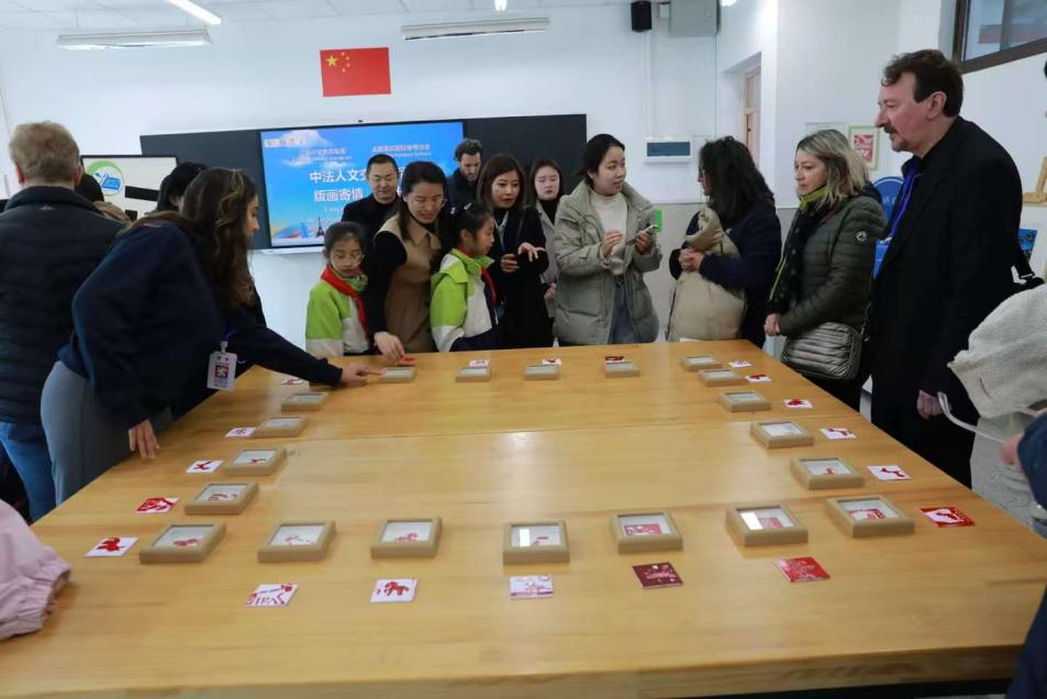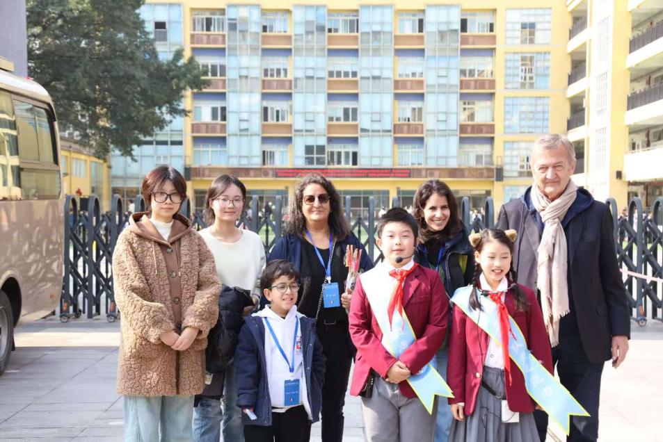 11月26日,代表团一行前往江南小学教育集团联校广茂小学与黄桷垭小学参观交流。在两所公司的社团活动现场,三位同学全程提供口译服务,协助法国代表团体验象棋对弈、编程实践、版画创作等特色课程。面对版画制作中的专业技法讲解、编程课程的技术术语翻译等场景,她们凭借扎实的语言积累与快速反应能力,精准传递教学内容与互动信息,让法国嘉宾深度感受中国基础教育的多元特色与校园文化的独特魅力。