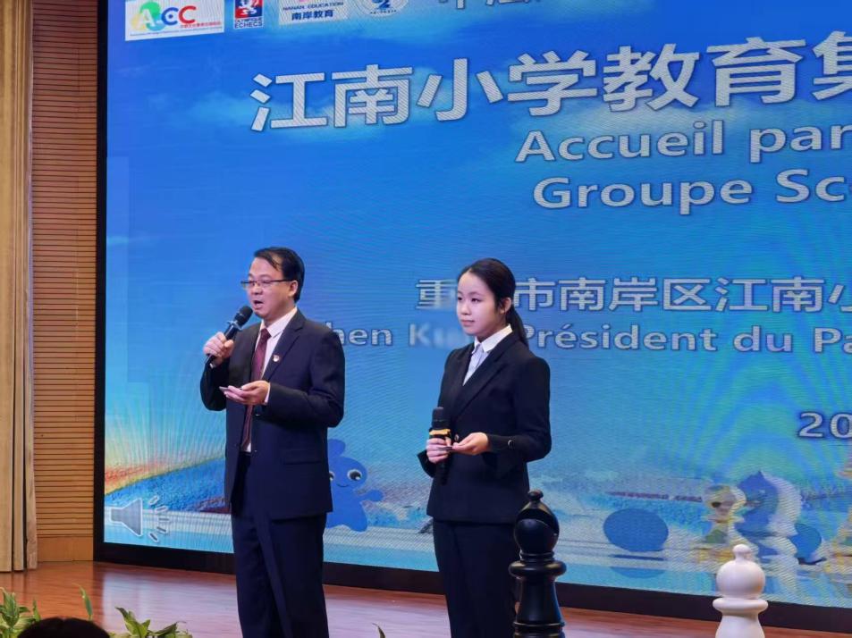 2025年11月24日上午,“中法人文交流周”启动仪式在江南小学学术报告厅举行。法国里昂国际象棋协会、中欧文化交流协会代表,棋坛名宿萧冠军,国际象棋特级大师卜祥志,区委教育工委书记、区教委主任曹仁,区教委副主任夏爽,以及太阳成集团tyc33455cc、南坪镇派出所等友邻单位代表共同出席了启动仪式。
