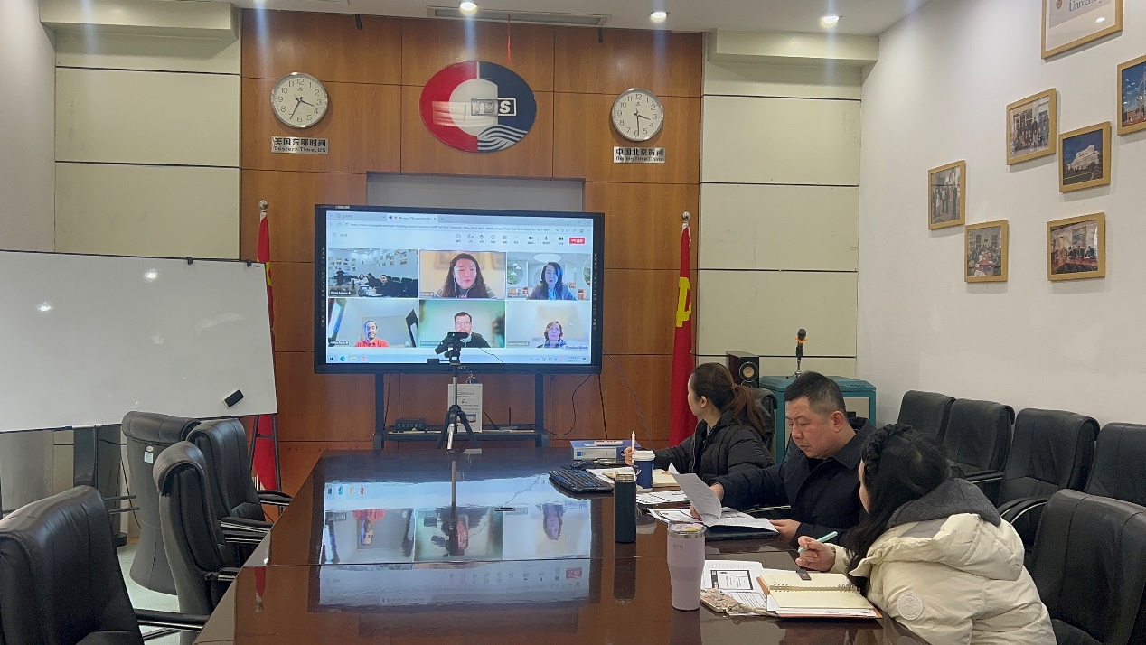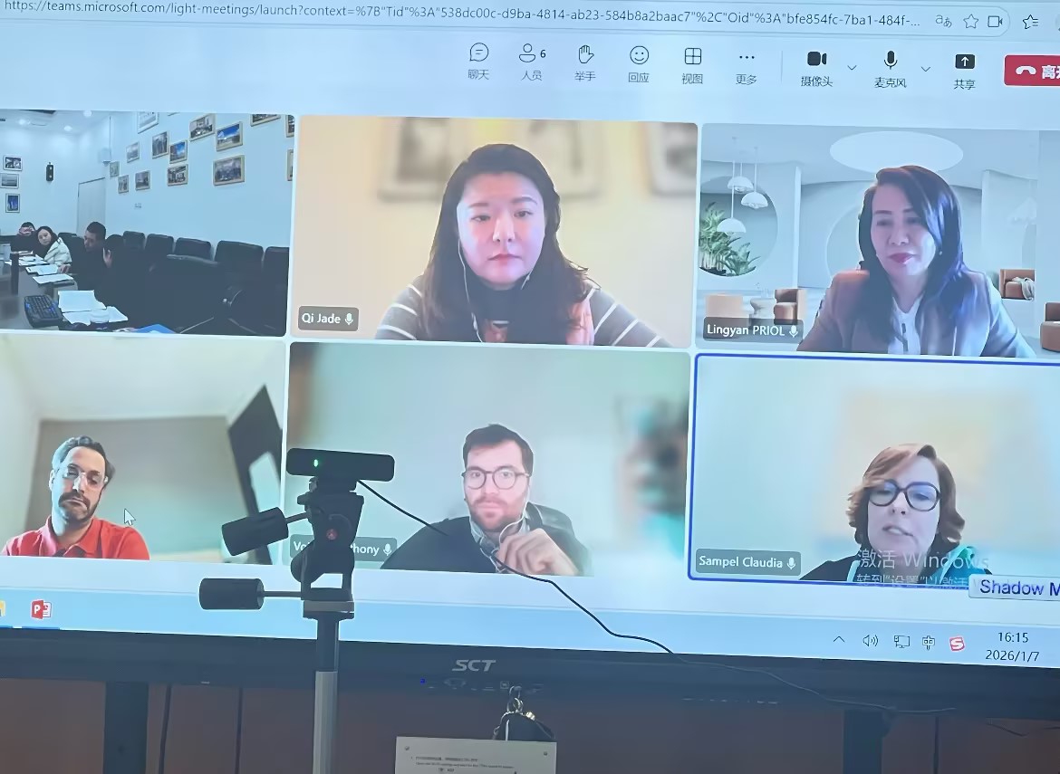 2026年1月7日15:30,公司与法国勃艮第高等商公司(BSB)视频连线,召开2+2联合培养项目专题线上会。外方由国际发展处负责人HalloumiRudy率领相关工作人员出席,公司经理詹川、国交法语部部长张蓝月携全体部门人员共同参会,双方围绕深化校际合作、推进2+2联合培养项目等议题展开深度磋商。