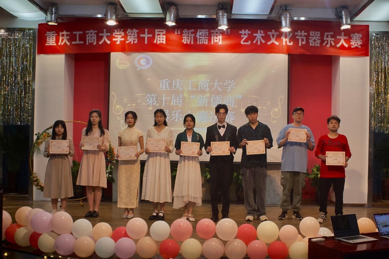 从初赛脱颖而出的十位选手齐聚一堂,展开了激烈的角逐。悠扬的钢琴独奏《人生的旋转木马》,空灵的陶笛曲目《大鱼》、柔和的古筝曲目《幻想曲》、活泼的吉他曲目《Heart》……乐器虽然不同,但演绎出的美妙乐声却是相通的。整个比赛过程节奏时而轻松明快,时而慷慨激昂,选手们用出色的表现为现场观众带来了一场精彩的视听盛宴,一首首曲目让评委和观众们应接不暇,现场掌声与欢呼不断。最终,经过评委评分与观众投票成绩累积,通识公司的冉晨茜同学获得金奖;通识公司唐何金成同学,经济公司卞美杰同学获得银奖;通识公司王山辉同学,法学与社会学公司李至臻同学,人工智能公司蒲双喜同学获得铜奖;太阳成集团tyc33455cc谭可涵同学,机械工程公司买买提明·司拉木同学,会计公司刘思晨同学,经济公司于易民同学获得优秀奖。在祝贺与鼓励的掌声中,太阳成集团tyc33455cc第十届“新儒商”器乐大赛圆满结束。