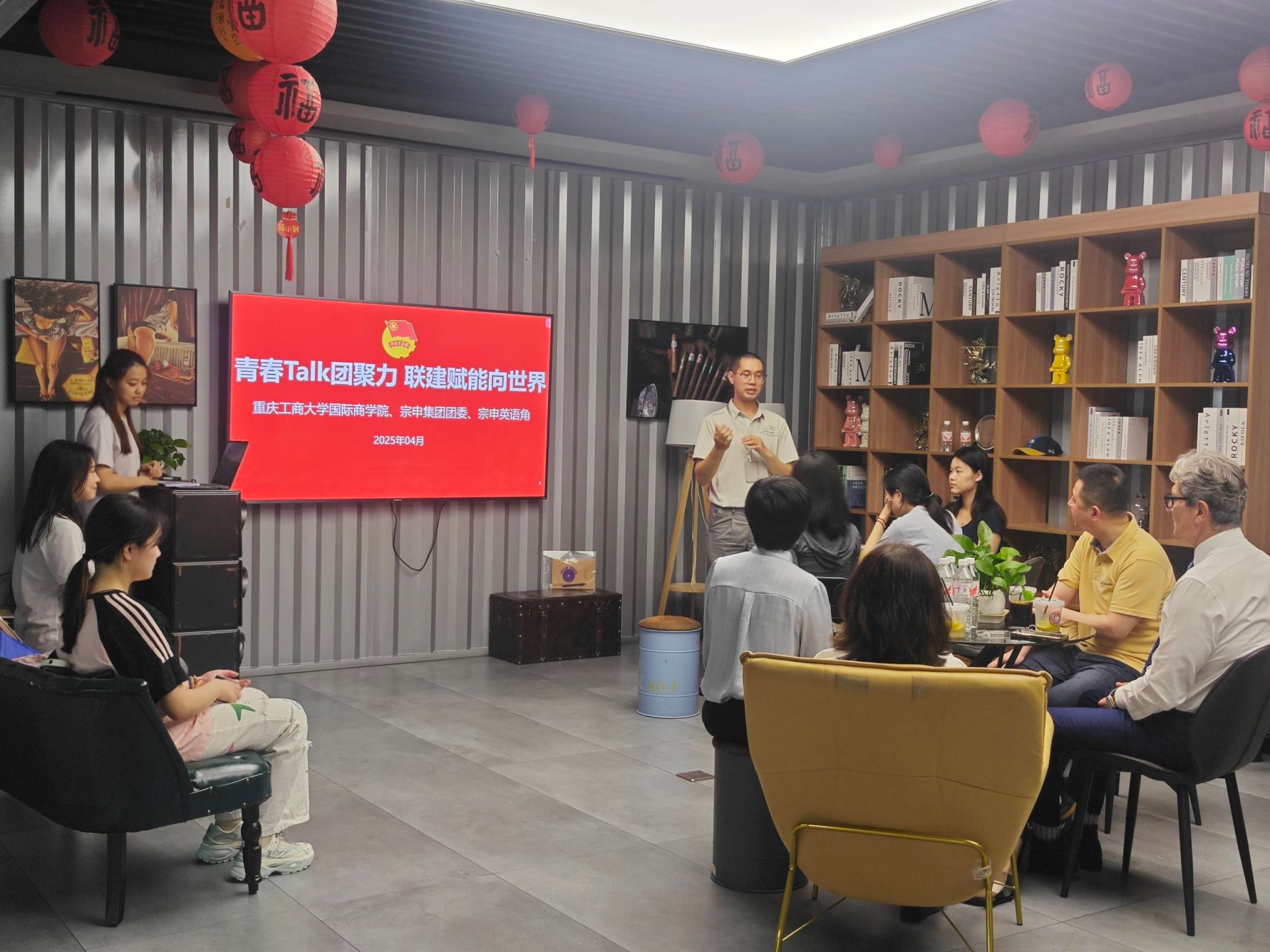 参观完后,师生们前往宗申集团“青年之家”英语角专题交流会上,双方围绕“全球化背景下中国智造的机遇与挑战”主题展开研讨。宗申集团团委代表以企业国际化战略为切入点,系统阐述技术革新对全球产业链重构的深远影响;管理学部系主任代俊结合宗申集团海外市场拓展案例,剖析中国智造企业在技术输出、品牌国际化进程中面临的跨文化沟通挑战,引导员工深化理解国际化案例;专任教师靳丽遥全程指导同学们开展英文交流,以全球视野分析热门议题,通过案例推演等形式,强化员工跨语言表达与国际规则应用能力。同学们则结合国际贸易等学科视角,从理论层面对产业实践进行多维解析。互动答疑中,员工针对职业定位、技能提升、实习机会等提问,企业代表结合行业发展与员工背景给予个性化建议。
