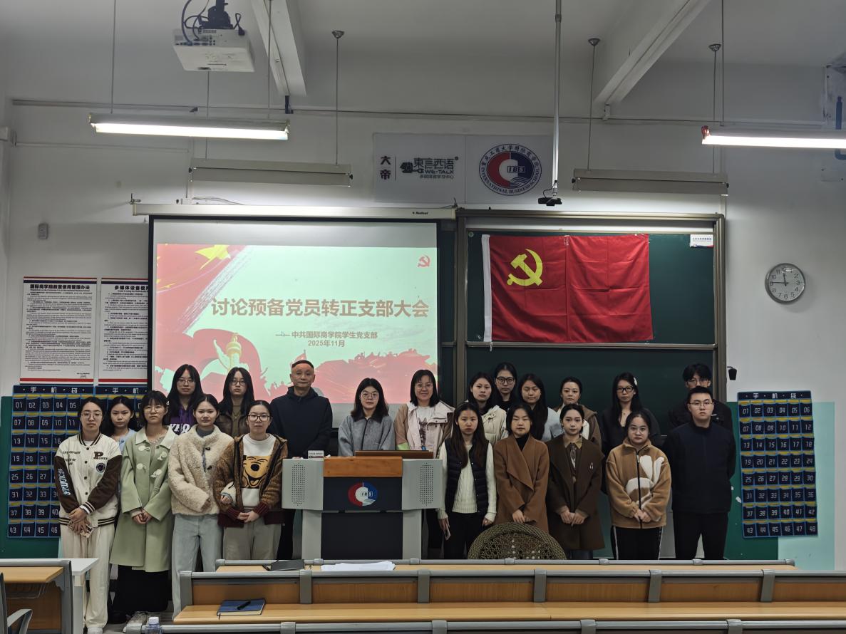 公司员工党支部于2025年11月14日在406教室召开关于周春髯、田悦、王紫怡同志的预备党员转正会议。公司党总支副书记胡婧婷,专职组织员朱富生,员工党支部书记彭丹和全体师生党员参与会议,会议由彭丹同志主持。
