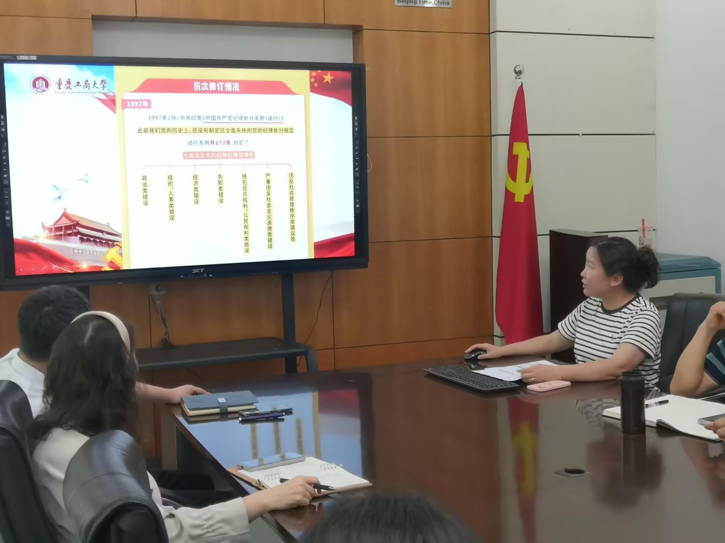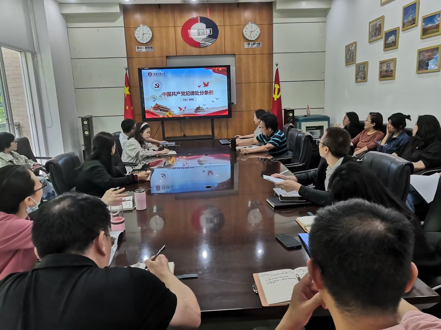 4月19日下午14:30,公司教工党支部在公司60510会议室开展四月份主题党日活动,专题学习《中国共产党纪律处分条例》,认真学习四月份基层党组织政治理论学习相关内容,教工支部全体党员参加会议。会议由教工党支部书记陈京晶主持。
