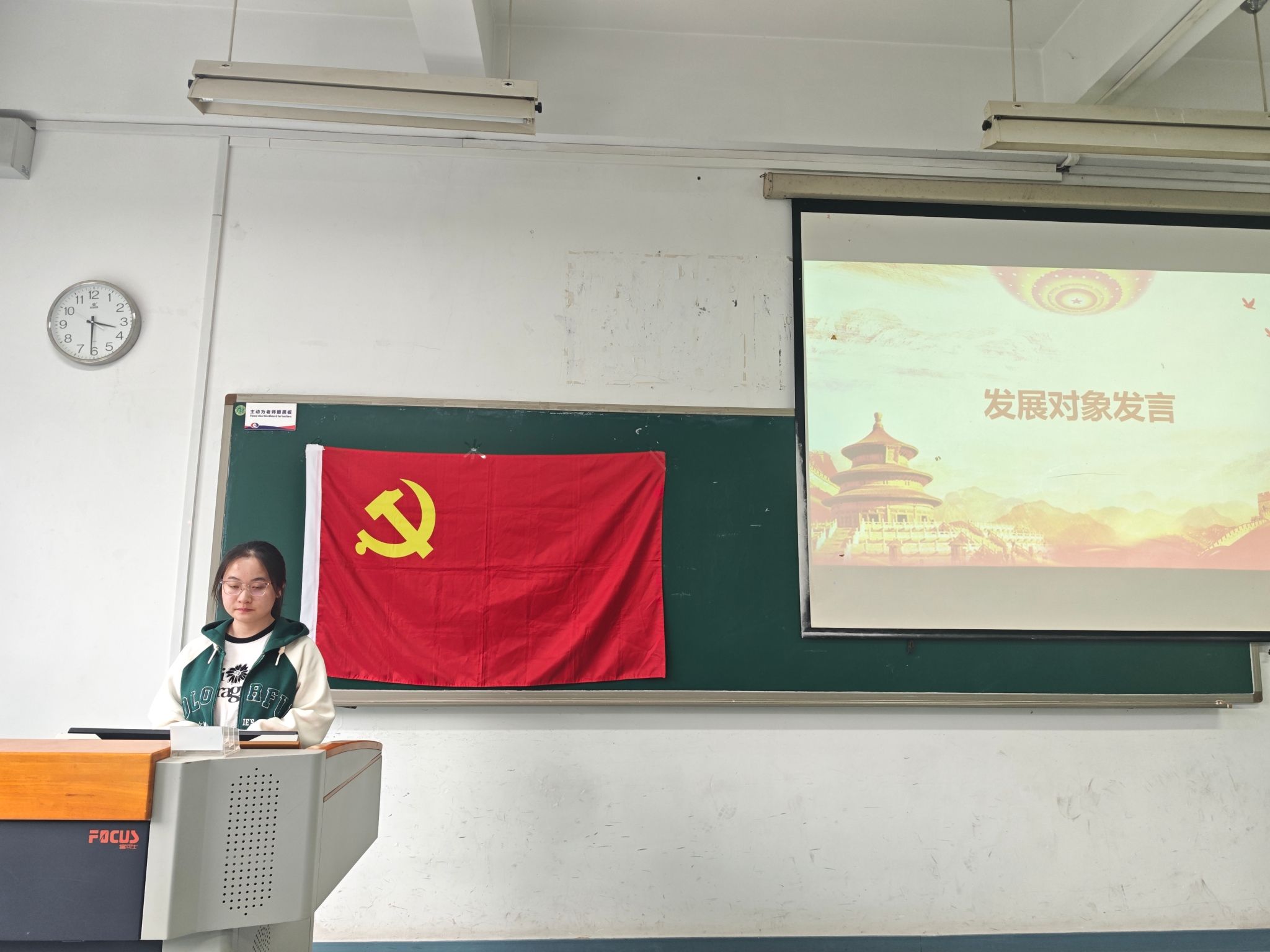 会议由彭丹老师主持,讨论接受预备党员。首先,罗雅心、刘俊颖、雷雨欣、陈泓西四位发展对象依次向党组织汇报了自己在培养阶段的基本情况,包括思想、生活、学习、优点和缺点等方面,并且在汇报过程中表明了自己加入党组织的恳切和意愿。其次,入党介绍人分别对发展对象在培养阶段内的表现情况发表意见,认为这四名发展对象思想态度端正,作风正派,一致同意推荐其加入中国共产党。再次,江洋老师代表支部委员会介绍了这四位同志在发展期间的教育考察和政治审查情况,认为这四位发展对象符合预备党员的要求。同时,多位与会党员给予了罗雅心、刘俊颖、雷雨欣、陈泓西同志肯定评价,同意发展其为预备党员。在接下来的投票环节,四名同志都获得了在场正式党员的全票肯定,同意其发展为中共预备党员。在投票结束后,罗雅心、刘俊颖、雷雨欣、陈泓西同志都怀着激动的心情对未来的党员发展做出了规划,承诺在学习生活中起到先锋模范作用,不忘初心,牢记使命。