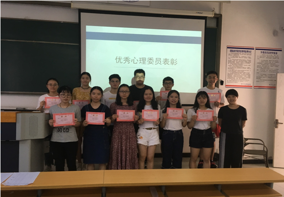 为加强公司老员工心理健康教育工作,提高班级心理委员的工作能力和水平,同时更好的发挥班级心理委员在心理健康教育工作中的作用,2018年6月28日下午五点半,2017-2018年度优秀心理委员表彰大会在国商405教室成功举办。